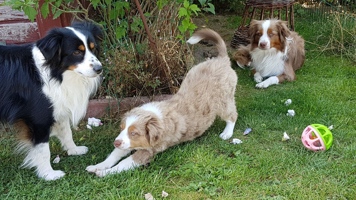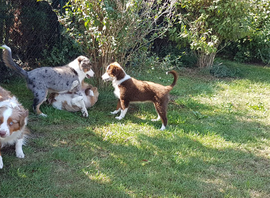 2018 ein Treffen mit den 16 Wochen alten Sweet Satin Welpen